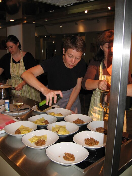 Einen Pastateig selbst zu machen hat seine Tücken. Unsere Spezialisten erklären Ihnen die traditionellen Methoden der Pasta Herstellung. Sie erhalten Einblick in die notwendigen Rohmaterialien, die verschiedenen Teig -Typen. Schlussendlich werden wir gemeinsam verschiedene Teige von Hand kneten, die Pasta schneiden, formen und füllen. Jetzt ist Genuss angesagt. Wir werden Ihnen die Pasta mit ansprechenden Saucen frisch zubereitet servieren.