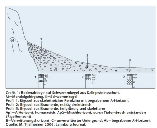 Abbildung 10:  Bodenquerschnitt am Mendelabhang