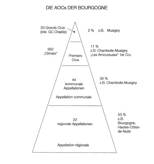 Elegante Pinot Noir-Weine stammen aus dem Burgund, von den Hügeln der Côte d’Or. Auch hier gilt bei der Qualitätsbewertung dieser teuren Weine nicht die Position eines Weingutes in der AOC-Hierarchie (siehe Schema Burgund) sondern die Zuverlässigkeit und das Können seiner Weinmacher.